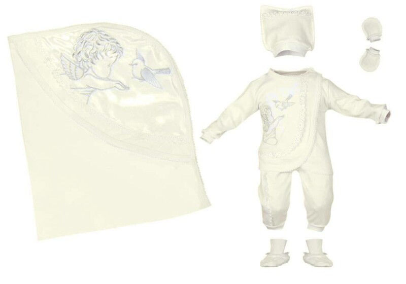 Дитячий комплект *Янголятко* відноситься до товарної категорії *Дитячі набори в подарунковій упаковці* та вироблено на нашому швейному виробництві у Харкові з дотриманням найвищих стандартів якості.