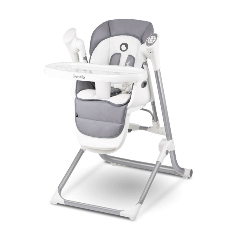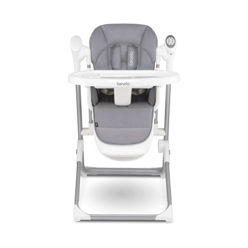 Стільчик для годування Lionelo Niles Grey має м'яку оббивку та спеціальну вставку для новонародженого, завдяки якій кожна дитина почуватиметься в ній комфортно.