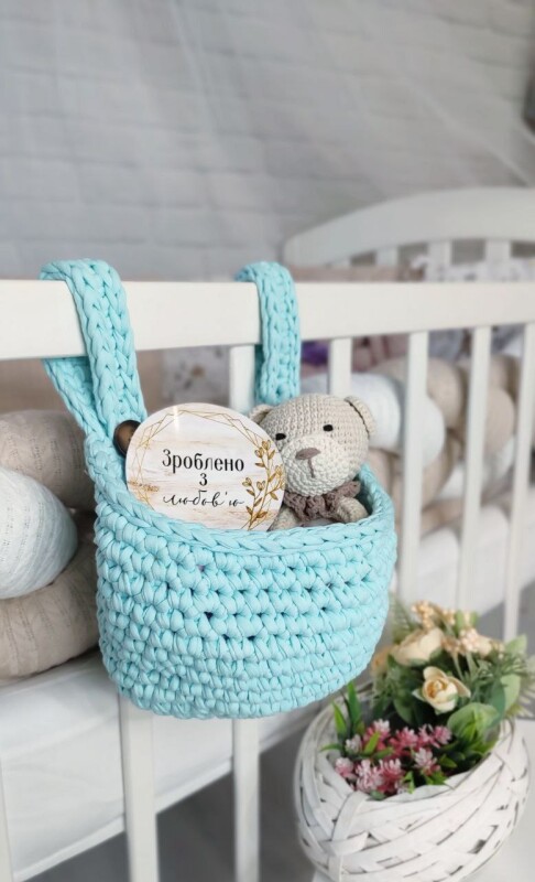 В'язаний органайзер - кошик із трикотажної пряжі для дитячого ліжечка.