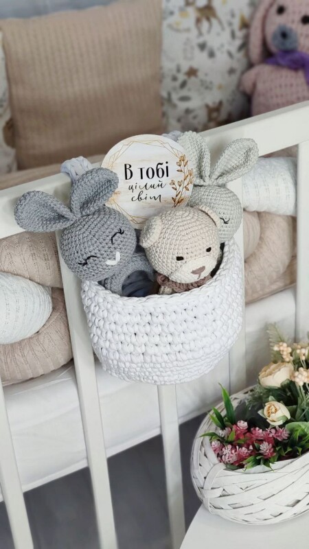 В'язаний органайзер - кошик із трикотажної пряжі для дитячого ліжечка.