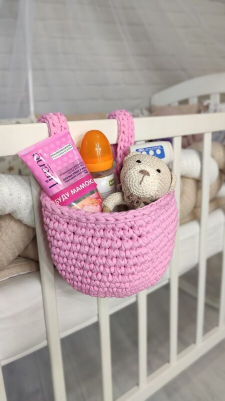 В'язаний органайзер - кошик із трикотажної пряжі для дитячого ліжечка.