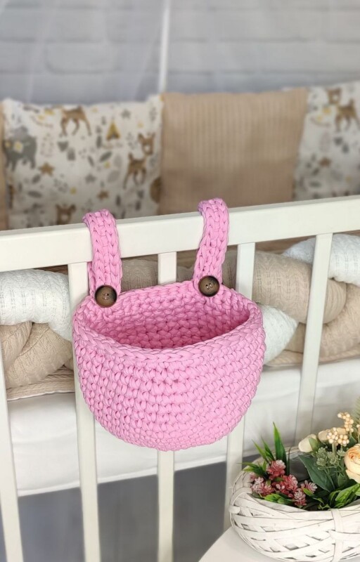 В'язаний кошик органайзер для дитячого ліжечка Рожевий