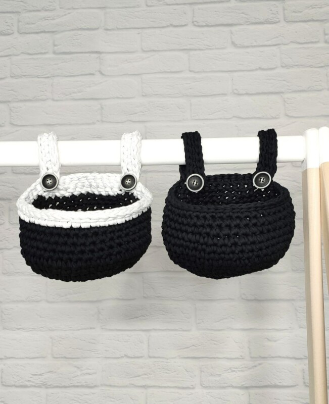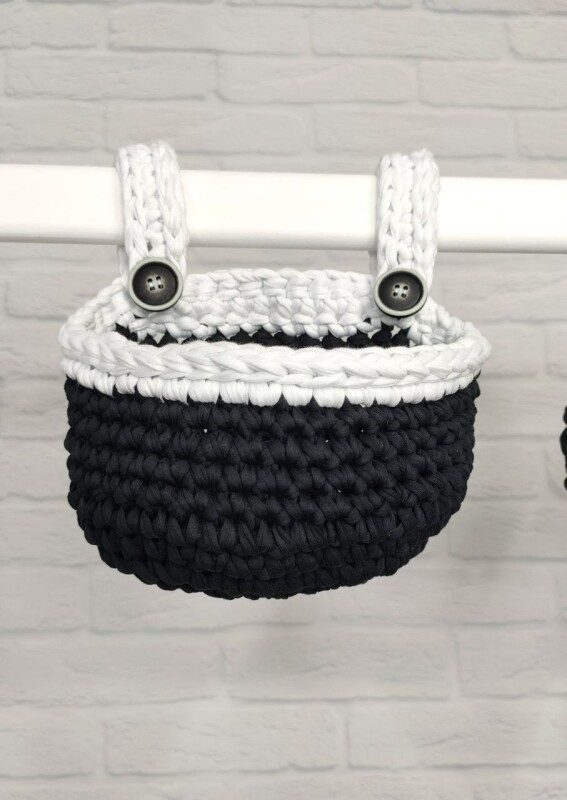 В'язаний кошик органайзер для дитячого ліжечка Чорно-білий
