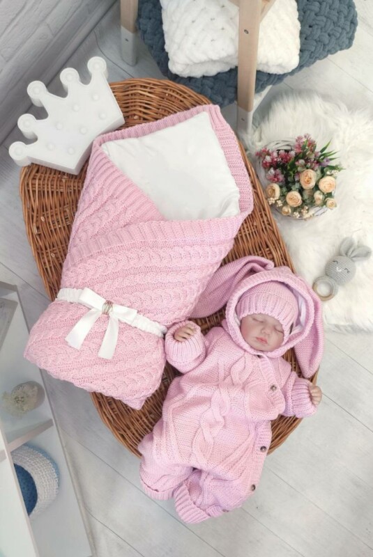 Juno, інтернет-магазин дитячих товарів\\Набір для новонародженого зима Зайчик в'язка Рожевий