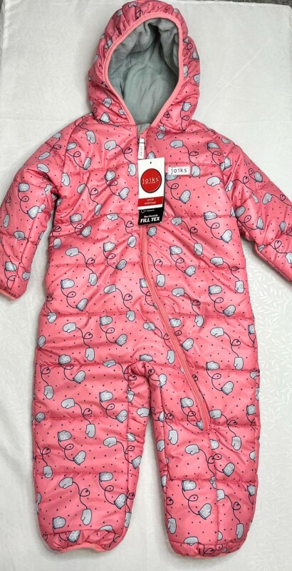 Яскравий рожевий колір і милий принт з рукавичками додають комбінезону грайливого вигляду.