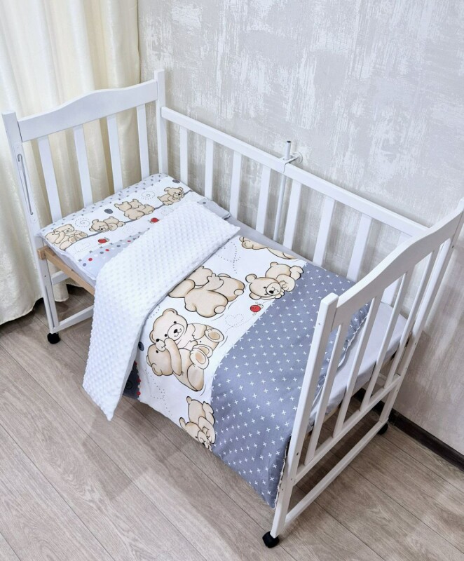 Створіть малюкові затишок та комфорт з нашим чарівним комплектом постільної білизни Teddy. М’який, приємний до тіла та суперзручний у догляді — саме те, що потрібно для солодких дитячих снів.