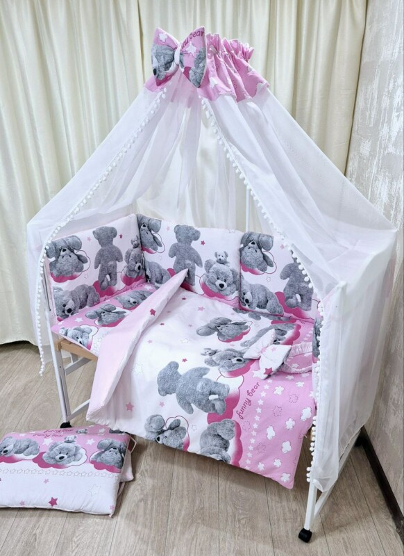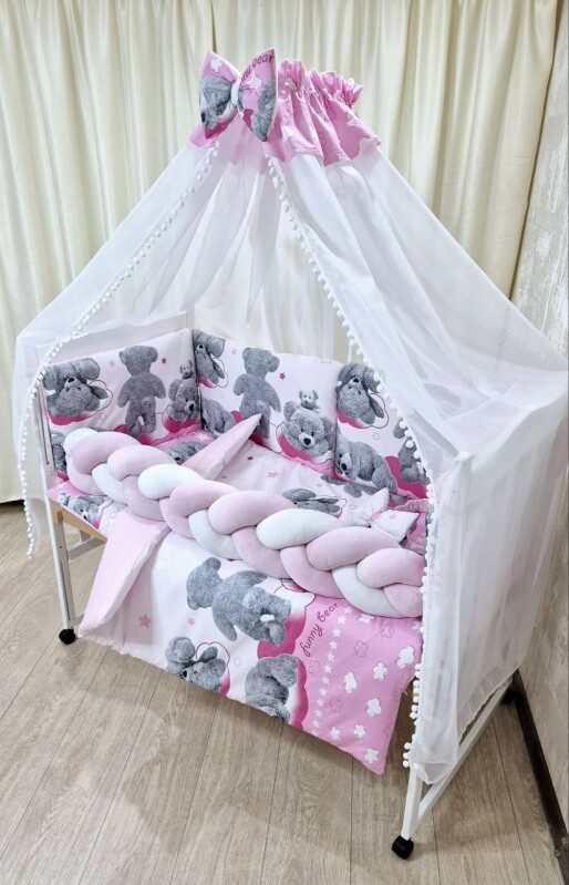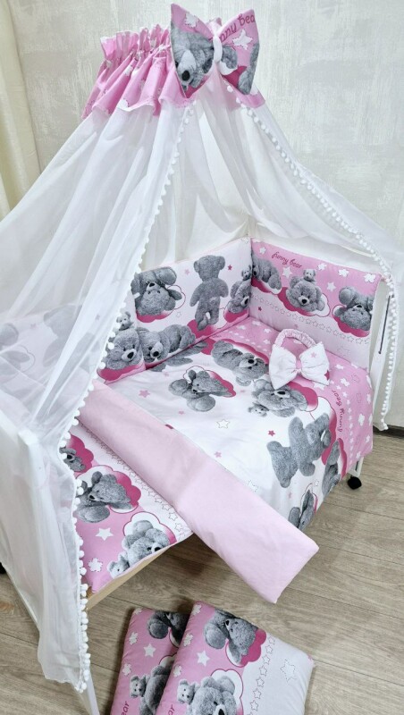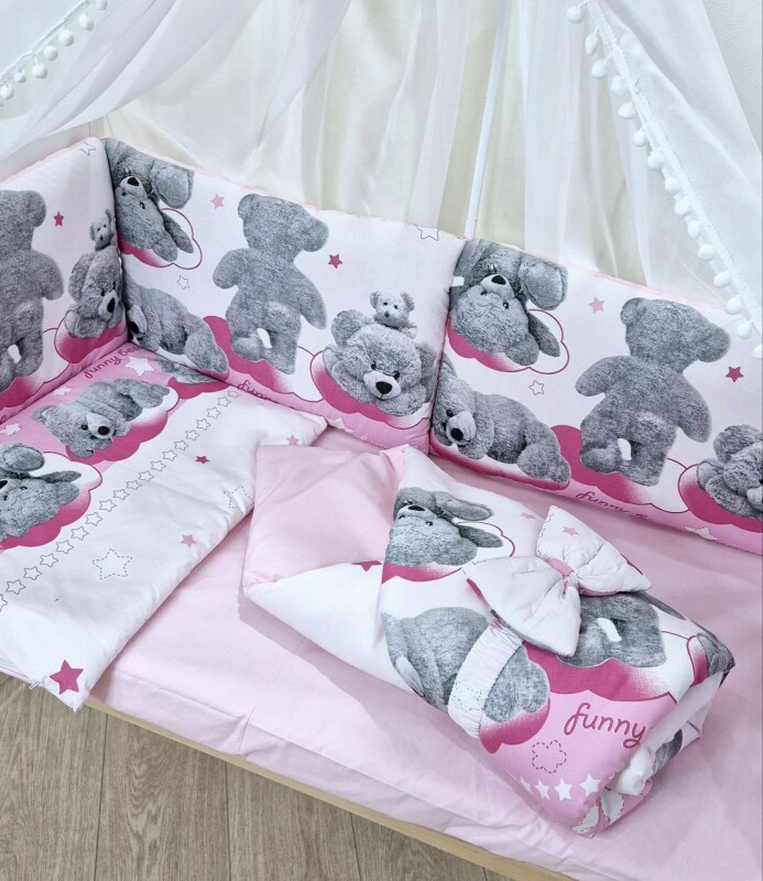Набір постільної білизни в дитяче ліжечко з захисними бортиками подушки Bonna Love Teddy Рожевий