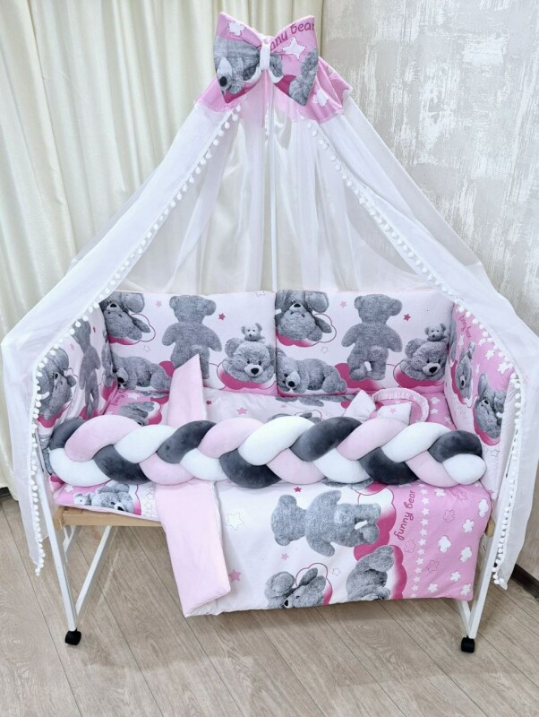 Juno, інтернет-магазин дитячих товарів\\Набір постільної білизни в дитяче ліжечко з захисними бортиками подушки Bonna Love Teddy Рожевий