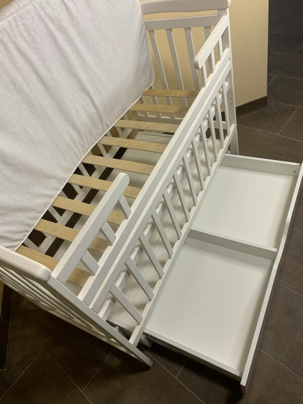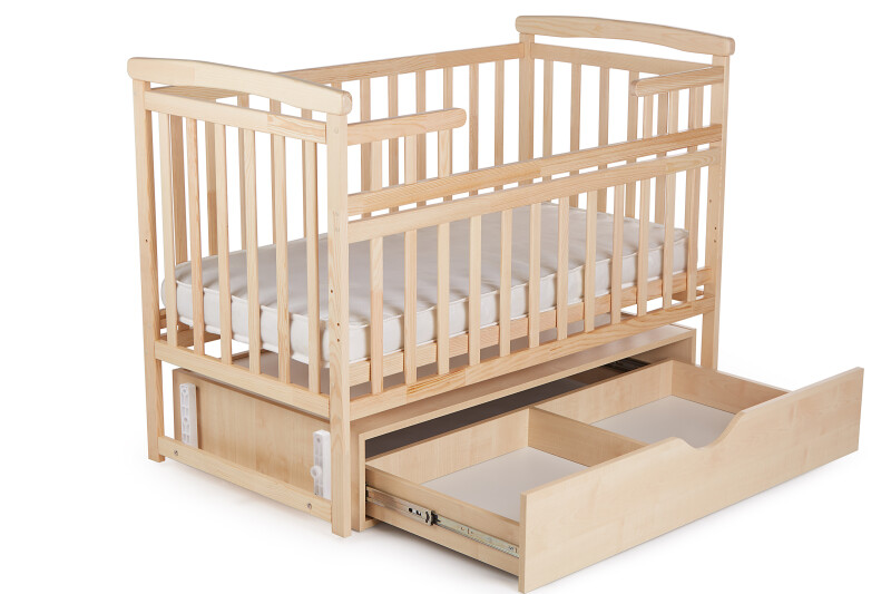 • ліжечко виготовлене з масиву сосни, ящик з ламінованого ДСП