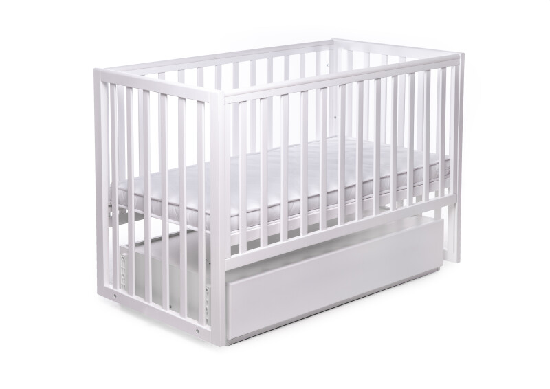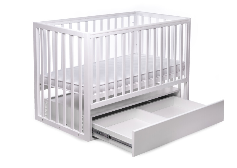 Механізм заколисування ліжка - поперечний. Дно виготовлене з ортопедичних ламелей. У комплекті з ліжком йде скринька для речей, яка висувається на надійних телескопічних напрямних. Виготовлено ліжко з натурального дерева та оброблено нешкідливим нетоксичним лаком для збільшення терміну експлуатації.