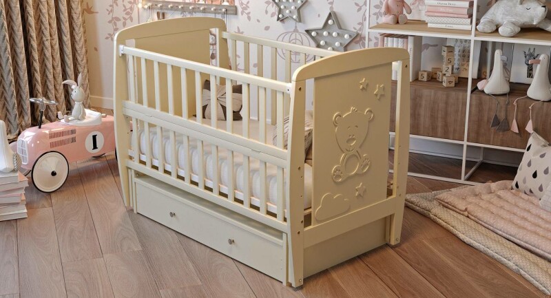 Дитяче ліжечко для новонароджених ДУБОК Умка шарнір з відкидною боковиною бук слонова кістка
