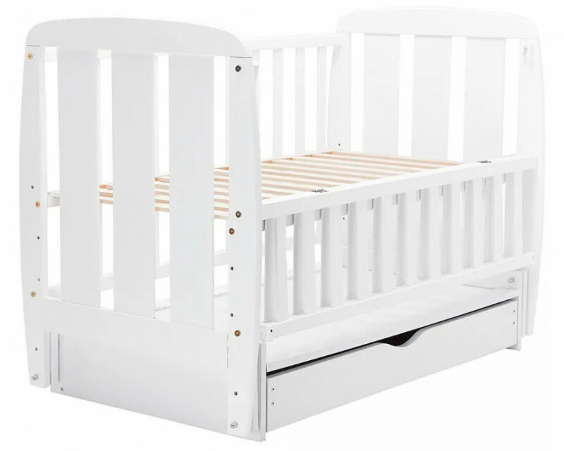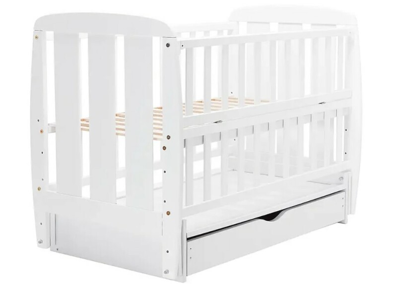 Дитяче ліжечко для новонароджених ДУБОК Кулька SH-03 з шухлядою, маятник, відкидний бік бук білий