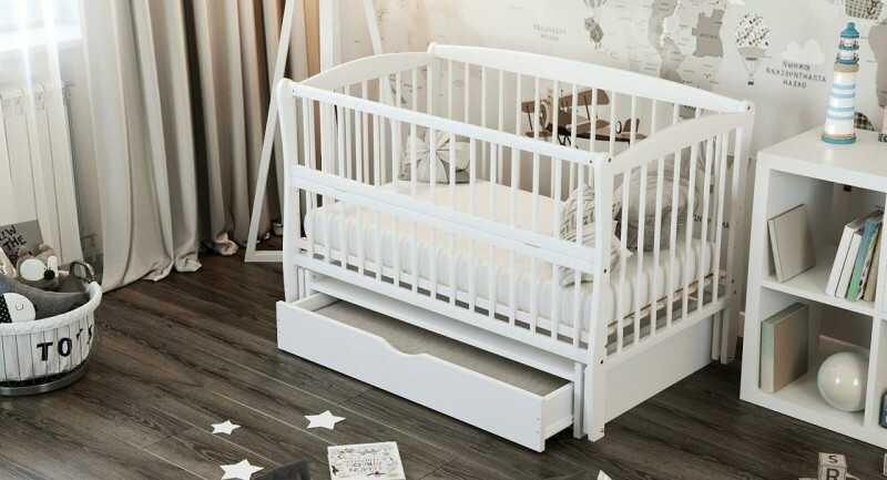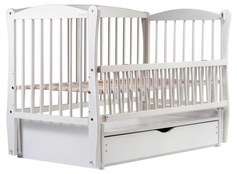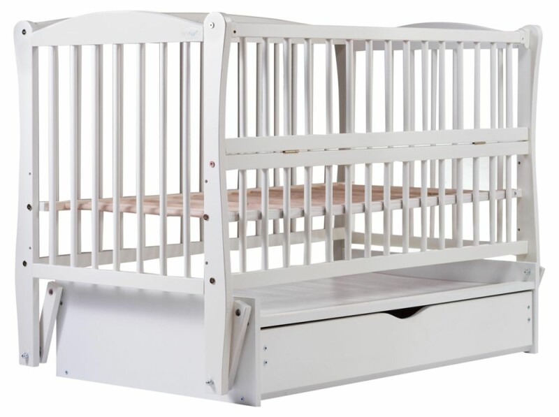 Дитяче ліжечко для новонароджених ДУБОК Еліт з шухлядою, маятник, відкидний бік бук білий