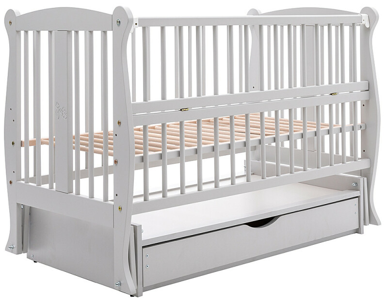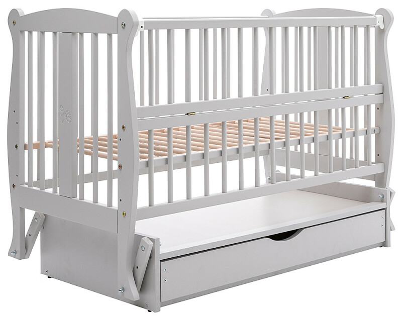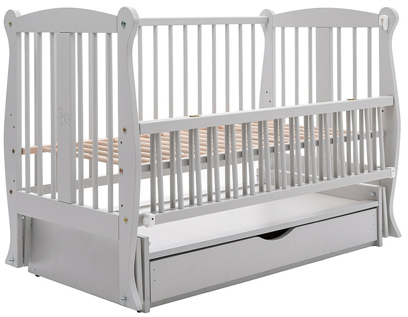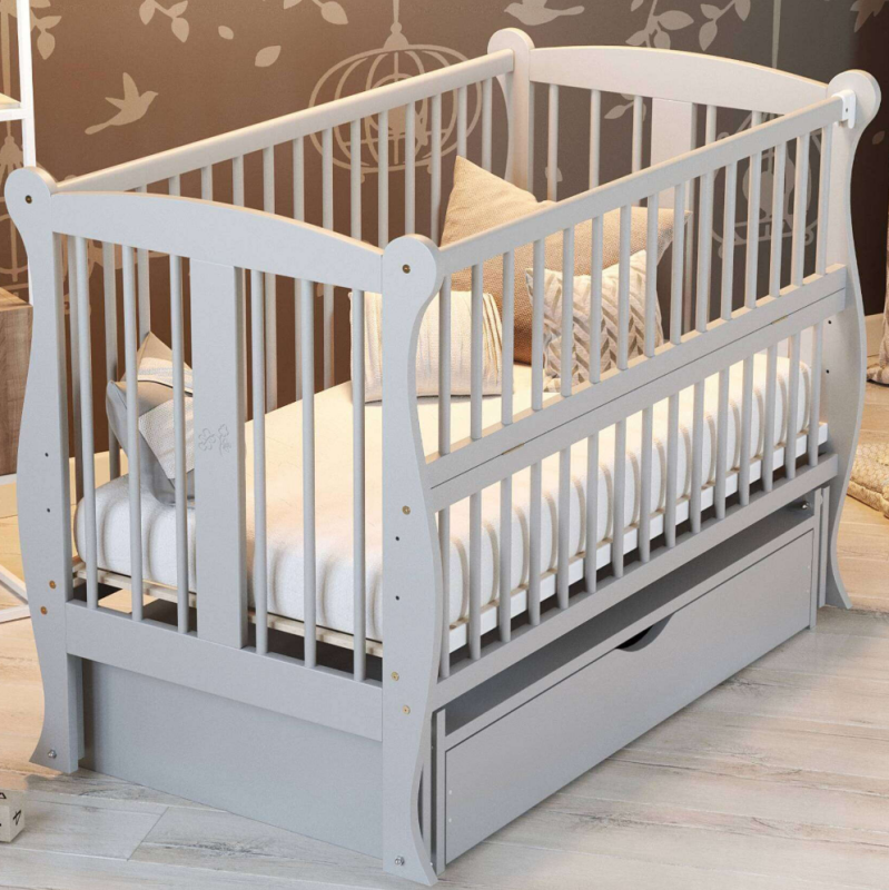 Дитяче ліжечко для новонароджених ДУБОК Грація з шухлядою, маятник, відкидний бік бук сірий