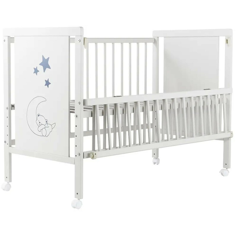 Ліжечко для новонароджених "Ведмедик" від виробника Дубок на колесах в білому кольорі