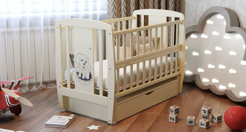 Дитяче ліжечко для новонароджених ДУБОК Песик з шухлядою маятник слонова кістка