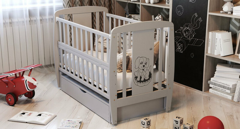 Дитяче ліжечко для новонароджених ДУБОК Песик з шухлядою маятник сіра