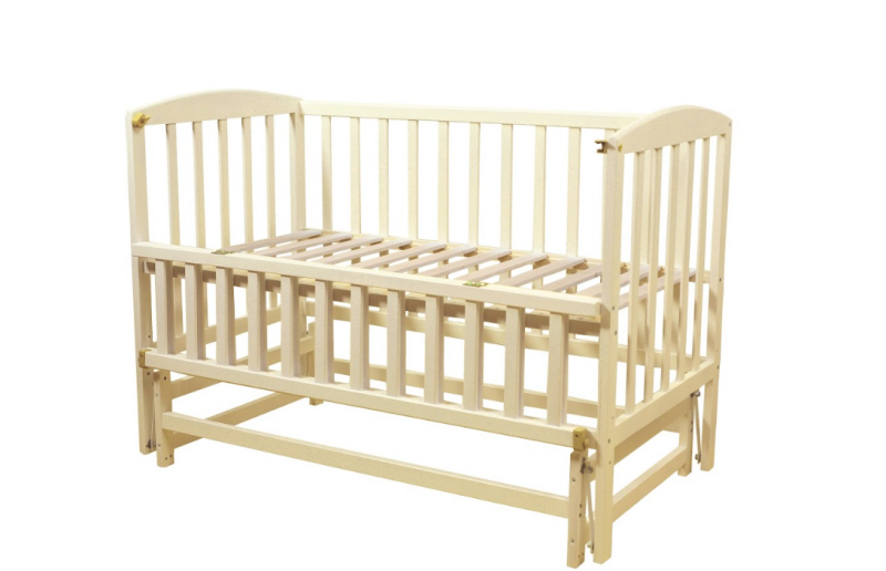 Велика увага приділена безпеці: планки розташовані на такій відстані одна від одної, щоб ручка або ніжка малюка не могли застрягти між ними. Боковина ліжка відкидна і фіксується міцними пластмасовими фіксаторами, забезпечуючи зручний доступ до дитини і одночасно гарантуючи її безпеку.