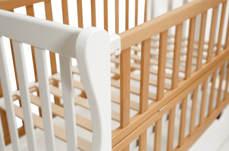 Дитяче ліжечко SOFI з відкидною боковиною та шухлядою білий+натуральний