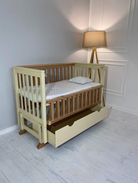 Дитяче ліжечко АLEX з відкидною боковиною та шухлядою слонова кістка+ натуральний