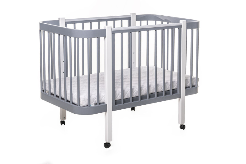 Особливу увагу приділено безпеці. Усі деталі мають заокруглені краї та ретельно відшліфовані поверхні, щоб виключити ризик травм. Ліжечко оснащене надійним механізмом опускання боковини — це рухома бічна частина, яку можна легко опустити або повністю зняти. Таке рішення значно полегшує догляд за малюком, нічні годування та укладання, особливо у перші місяці після пологів.