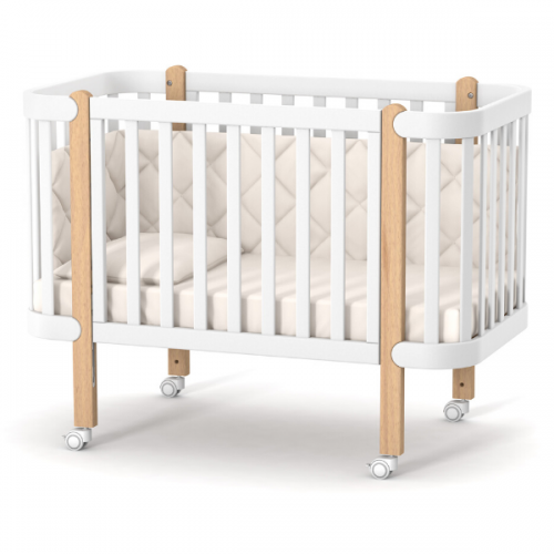 - чотири рівні установки спального місця: 26,5 / 41,5 / 52,5 / 56,5 см (від підлоги до верхньої точки підматрацника, коли ліжечко на ніжках) + можливість установки підматрацнику у верхньому положенні під кутом 3° - для безпечного зригування у дитинки; спрощений монтаж та зміна рівнів установки підматрацнику;