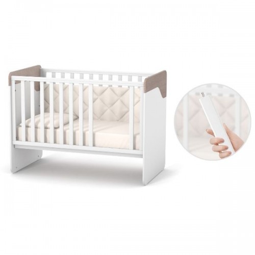 - можливість використовувати ліжечко як приставне або дитячий диванчик (для цього потрібно зняти бокову рухому стінку), для використання ліжечка як приставного рекомендуємо використовувати систему кріплення;