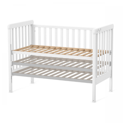 - рівні встановлення спального місця (від підлоги до верхньої точки підматрацника, коли ліжечко на ніжках): 27,5 / 42,5 / 57,5 см;