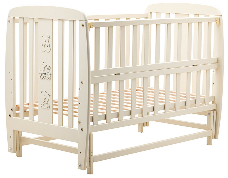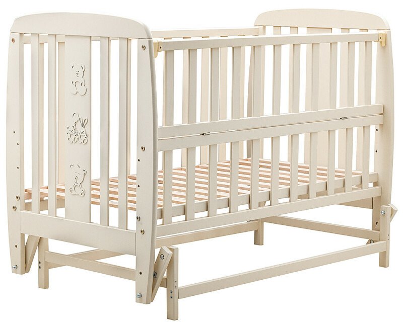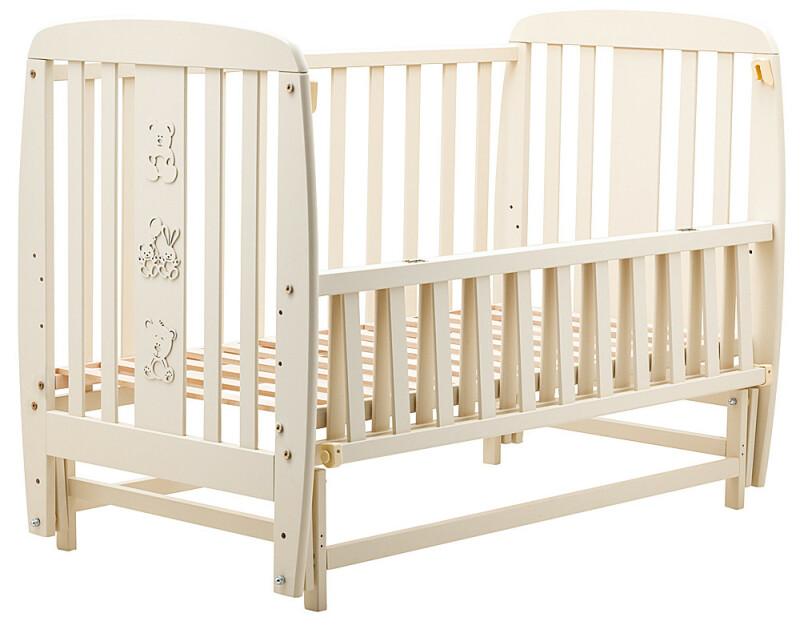 У ліжечку передбачена відкидна бічна стіна. Коли дитина підросте, можна опустити боковину до середини (дитина зможе сама безпечно залишити ліжечко). За бажання стіну можна повністю зняти.
