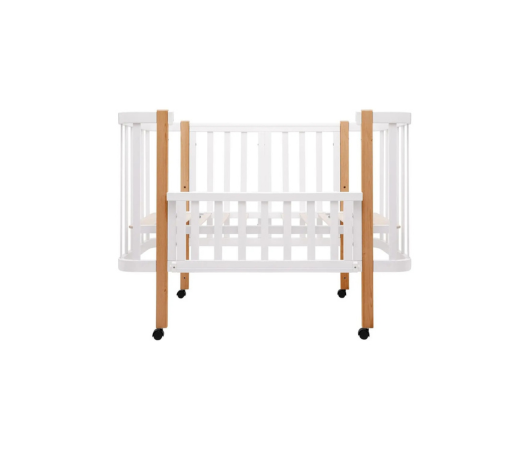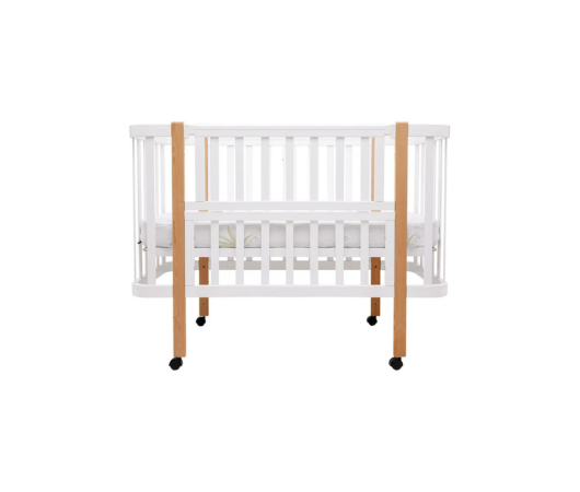 Бічна стінка ліжечка може опускатися всередину та повністю зніматися. Відкидна боковина має надійний спосіб фіксації з боків, виключаючи небажане відкриття. Повністю знімна передня стінка дає можливість використовувати ліжечко як приставну люльку, або самостійне спальне місце для дітей дошкільного віку.