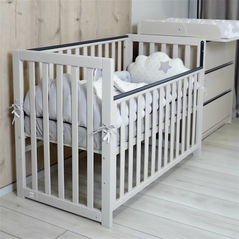 - можливість використовувати ліжечко як приставне або дитячий диванчик (для цього потрібно зняти бокову рухому стінку), для використання ліжечка як приставного рекомендуємо використовувати систему кріплення;
