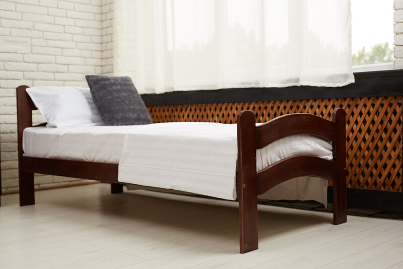 Зручне дерев’яне ліжко має оновлений дизайн та надійну конструкцію. Модель виготовлена із масиву дерева бук, яке ретельно відшліфоване та покрите екологічною фарбою на водяній основі, або лляною олією (залежно від обраного кольору). Ліжко спроектовано по класичній схемі на меблевих гвинтах.