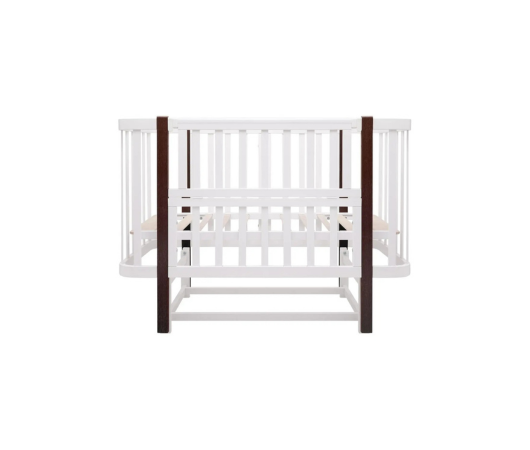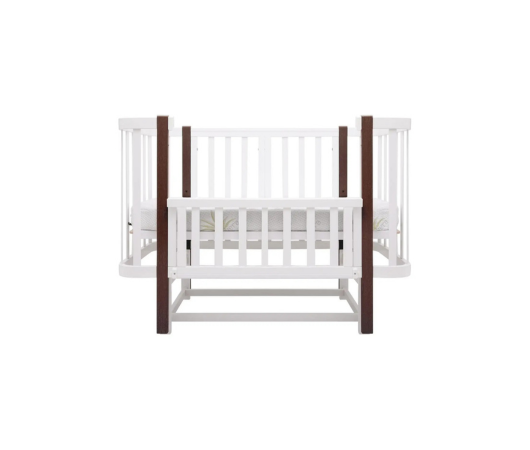Бічна стінка опускається до середини або знімається повністю, маючи надійну бічну фіксацію від випадкового відкриття. Знявши передню стінку, ви отримаєте зручний приставний диванчик. Додаткові переваги включають ортопедичне дно на ламелях та захисну ПВХ-накладку на бортик, яка вбереже і дитину, і ліжечко в період прорізування зубів.