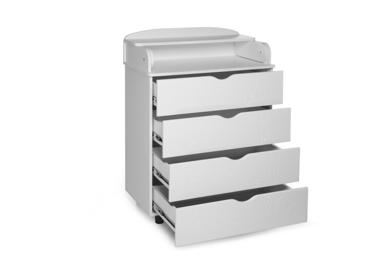 • Чотири зручні та місткі висувні ящики для зберігання дитячих речей;