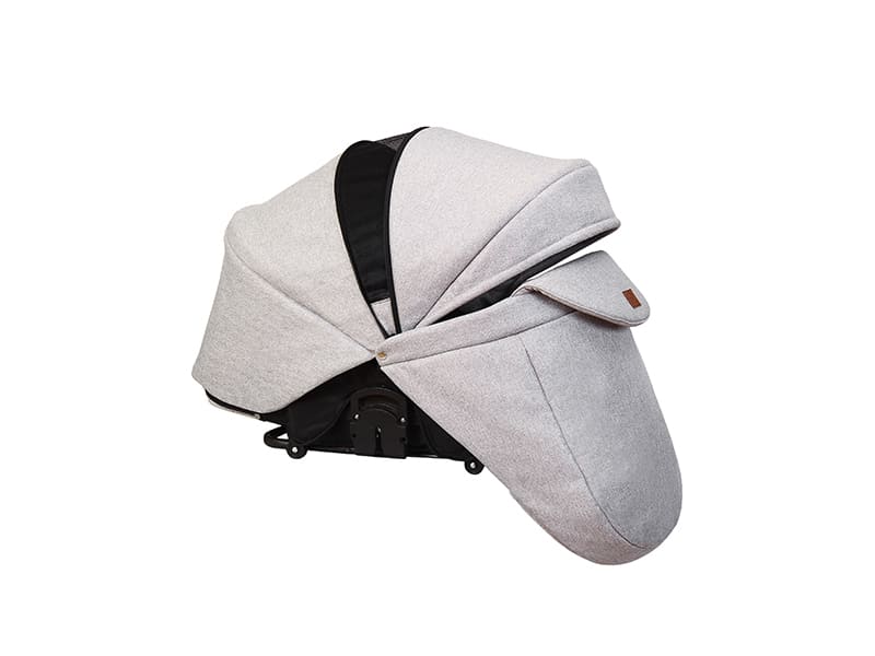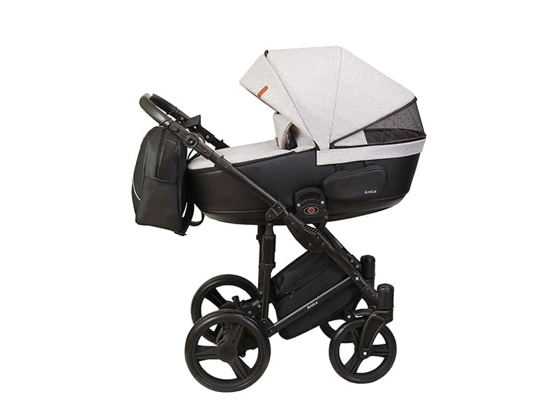 Нова колекція виконана в стильній лляній тканині, комплектується оригінальною рамою та модною сучасною пластиковою корзиною з елегантним аксесуаром – гаманцем для мами. Завдяки завуженій колісній базі візок легко проходить в ліфт. Модель зручна та комфортна в обслуговуванні.