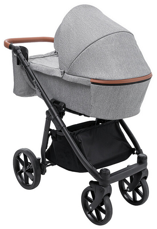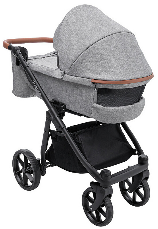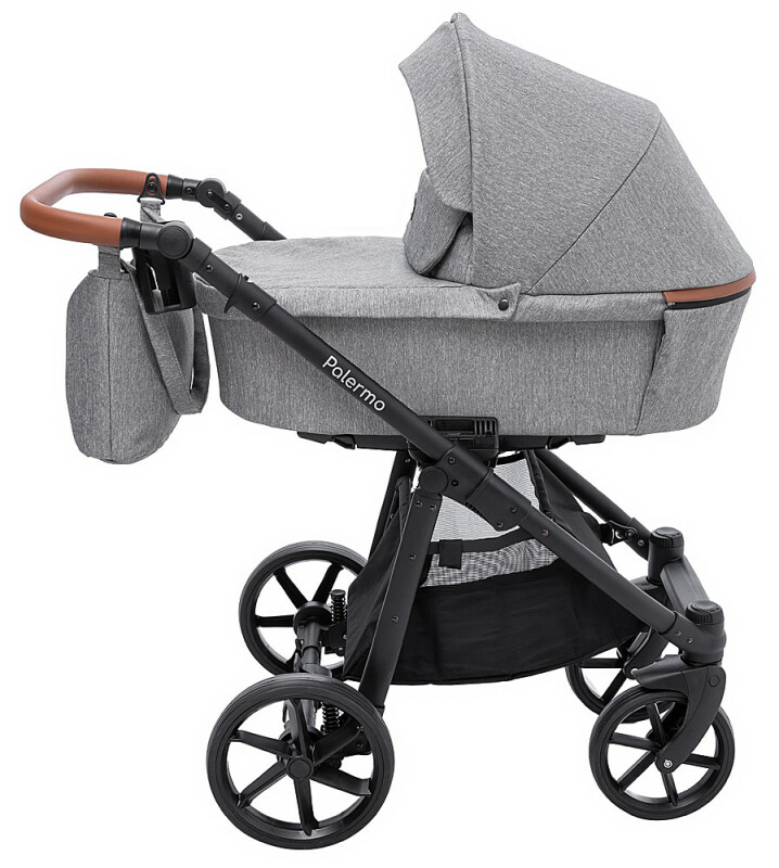 Ручка коляски Palermo, виконана з еко-шкіри, регулюється по висоті для зручності батьків різного зросту. Багажний кошик з сітчастими сторонами і підстаканник, зручно використовувати на прогулянках. Сумка для мами може бути закріплена на рамі коляски або носитися на плечі.