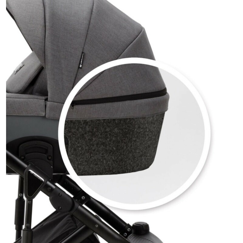 Дитяча коляска 2022 року Adamex Lumi представляє собою інноваційну модель з колискою, виготовленою зі спеціального матеріалу — піоцелан (EPP), що складається на 95% з повітря. Цей матеріал забезпечує колясці легкість, міцність і відмінні термостійкі властивості, гарантуючи комфорт для малюка в будь-яку пору року.