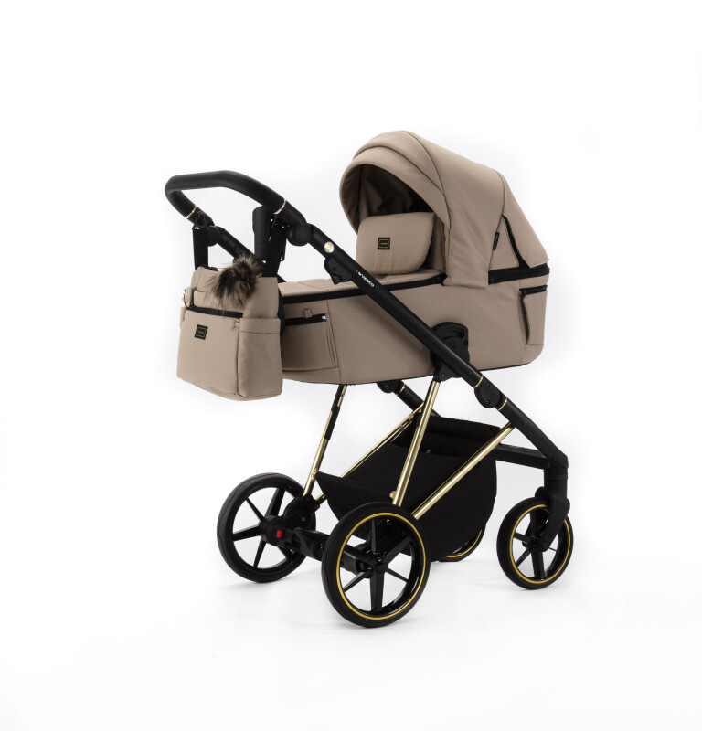 Juno, інтернет-магазин дитячих товарів\\Коляска універсальна 2 в 1 Adamex Vasco TK-867 Бежева тканина золота рама