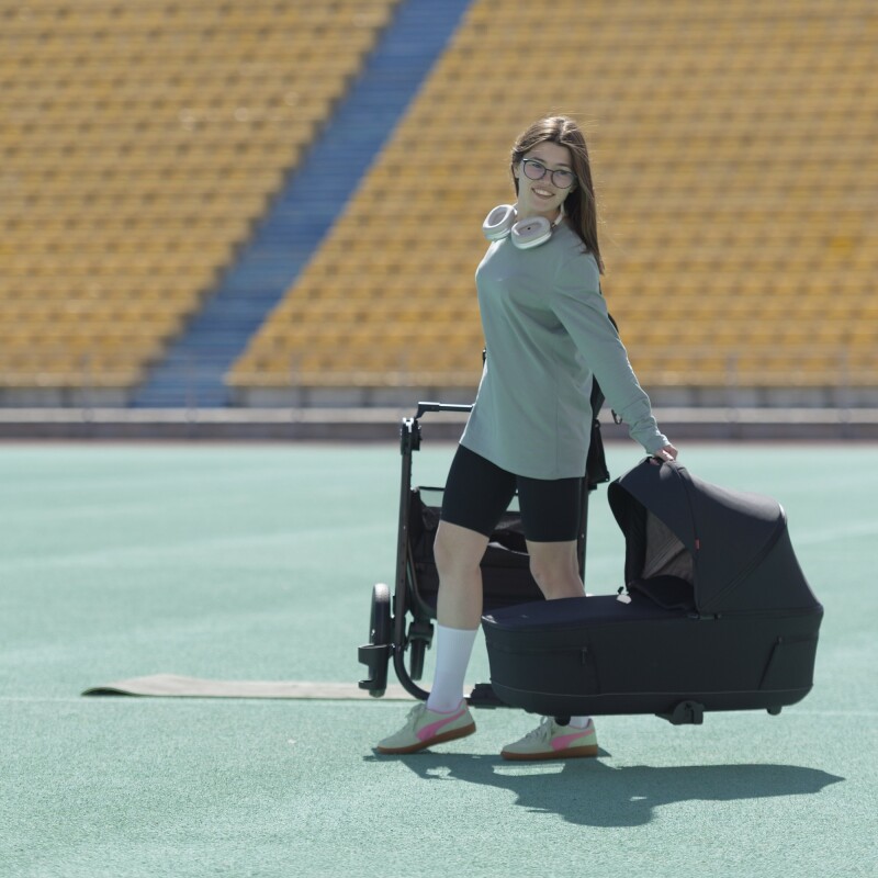 Прогулянковий блок компактно складається разом з рамою коляски за будь-якого напрямку його встановлення на рамі. Рама блокується від випадкового складання і розкладання.