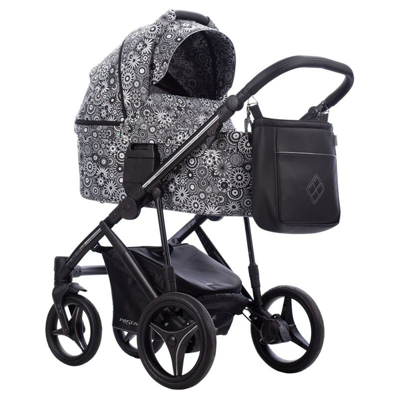 Коляска Bebetto Pascal 2 в 1 має унікальні деталі оздоблення, які надають їй елегантності. У трьох місцях коляски ви знайдете вишивку, виготовлену за технологією 3D: на чохлі колиски, на чохлі до сидіння та на сумці. Світловідбиваючі елементи збільшують помітність коляски в темряві. Дизайн візка сучасний і стильний, він напевно сподобається людям, які люблять класичні рішення.