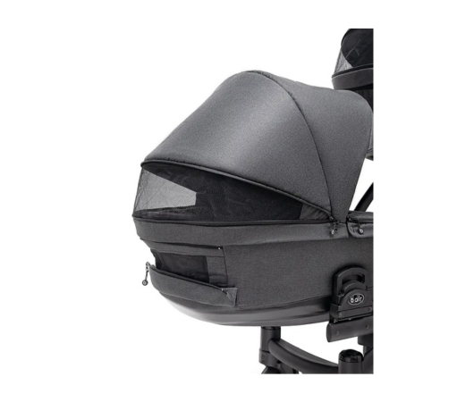 Люлька для новонароджених Bair Kiwi DUO має жорстке дно та високі борти. Кожна люлька оснащена ручками для перенесення, власним капюшоном, матрациком і накидкою для ніг. Капюшон із великим козирком регулюється одночасним натисканням на кнопки. Для спекотних днів є велике сітчасте вікно, приховане під тканиною капора.