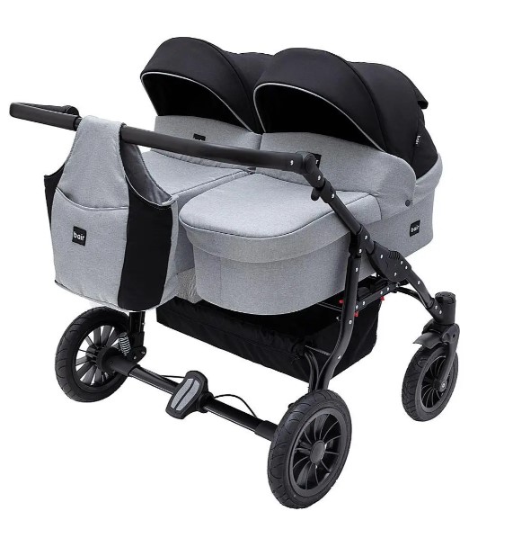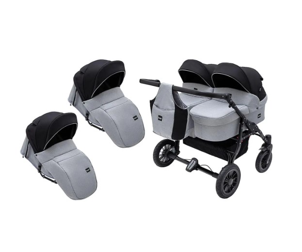 Рама оснащена незалежними люльками та сидіннями, кожен з яких можна регулювати індивідуально. Люльки середнього розміру можна встановити обличчям до мами, і кожна з них має свій власний капюшон, матрацик і чохол.