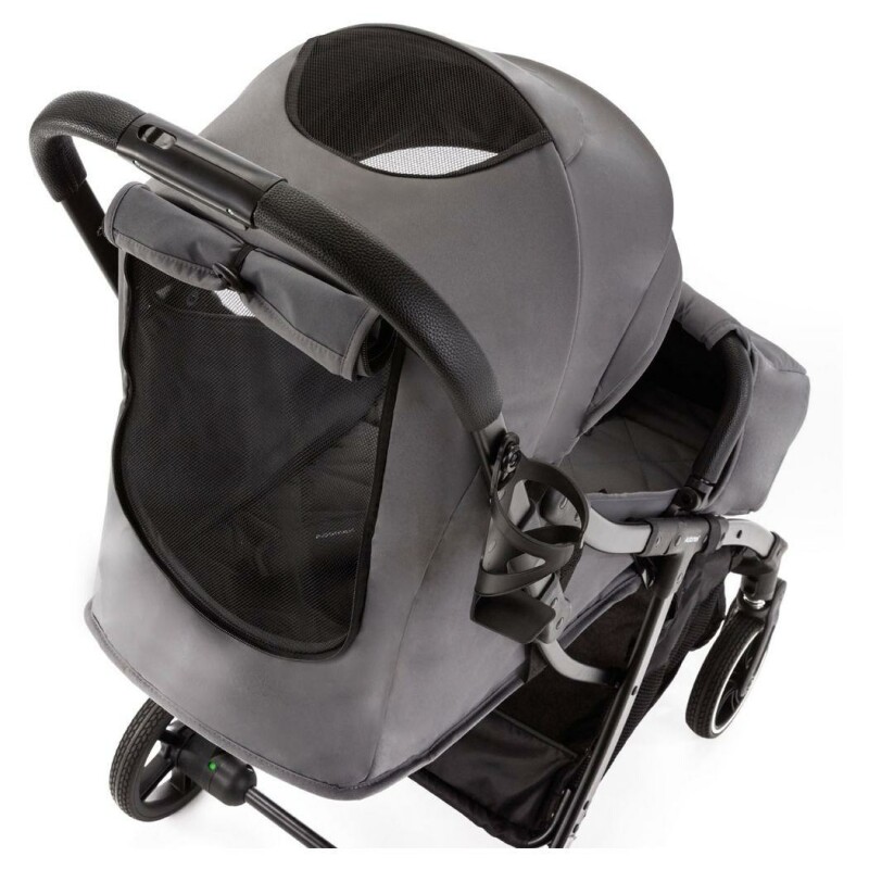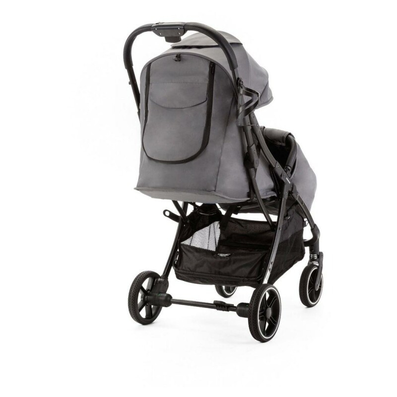 Ви можете вільно і плавно регулювати спинку за допомогою ременя (так зване безступінчасте регулювання спинки), а підніжка має 2 рівні регулювання. У каптурі є вентиляційне віконце з москітною сіткою, через яке можна спостерігати за малюком. У задній частині капюшона ви знайдете панель з кишенею для дрібниць, яка при розстібуванні перетворюється на велике вентиляційне вікно.