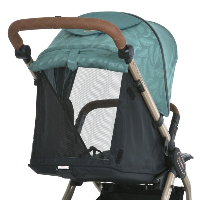 Оббивка коляски знімна, виготовлена ​​з поліестеру щільністю 320 D, має підкладку та водовідштовхувальне просочення.
