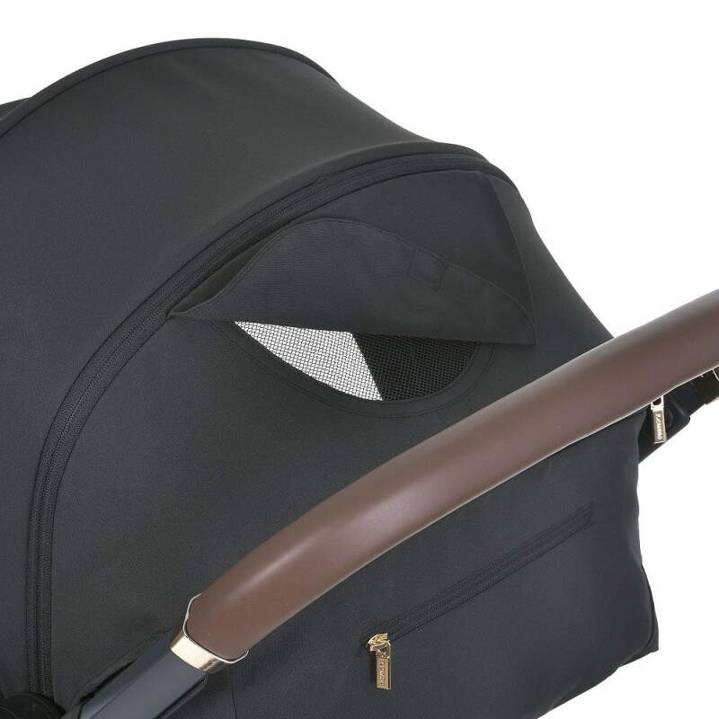 Спинка регулюється в 3 положення (106-169°) натисканням важеля. Підніжка регулюється в 3 положення, має вставку з екошкіри. Глибокий капюшон регулюється за допомогою застібки-блискавки, задня частина відстібається для кращої вентиляції. Є кишеня для дрібниць і оглядове віконце.