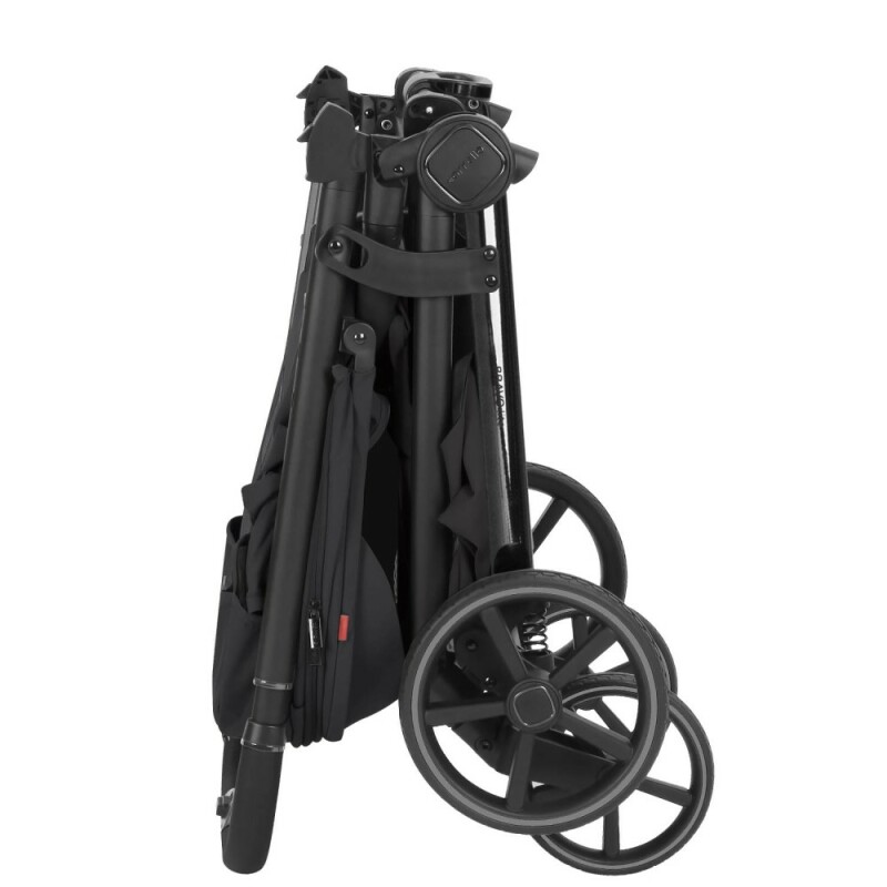 Щоб скласти коляску Bravo M/Lite, достатньо: одночасно натиснути кнопки регулювання висоти та запобіжник від випадкового складання. Опустити ручку в найнижче положення до клацання та направити її вперед за ходом руху коляски. Підняти коляску за спеціальну ручку. У складеному вигляді коляска блокується і зберігає вертикальне положення. Увесь текстиль коляски, включаючи кошик, знімається для прання. У комплекті з коляскою Carrello Bravo M/Lite: чохол на ніжки, москітна сітка, дощовик, підсклянник та LED ліхтарик .