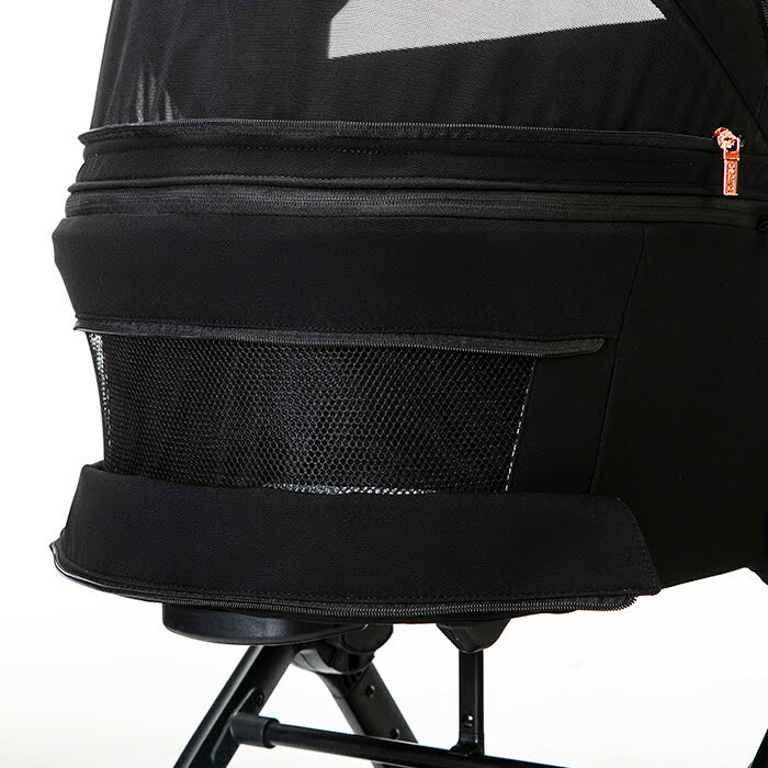 Щоб зробити коляску максимально зручною у використанні, рама виготовлена ​​з легкого алюмінію і складається до мінімального розміру одним рухом руки, завдяки чому її однаково легко переносити та зберігати як у горизонтальному, так і вертикальному положенні.