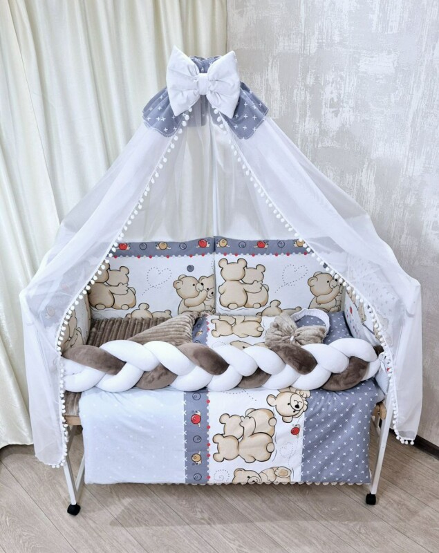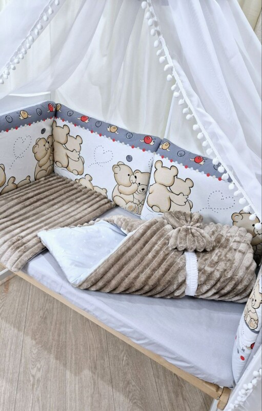 Juno, інтернет-магазин дитячих товарів\\Набір постільної білизни в дитяче ліжечко з захисними бортиками подушки Bonna Love Teddy Мінкі Коричневий