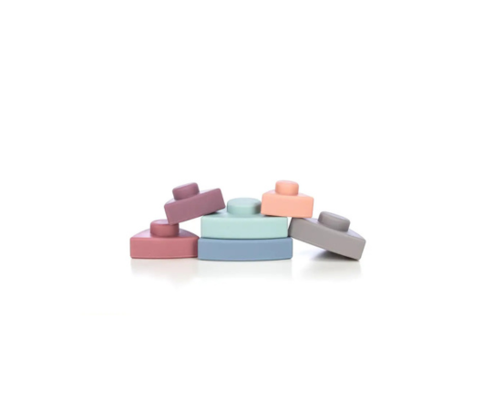 Набір містить 6 різних силіконових будівельних блоків у формі трикутника, які можна складати один на одного. Кожен будівельний блок різного кольору та розміру. Щоб легше складати та весело, будівельні блоки опуклі.