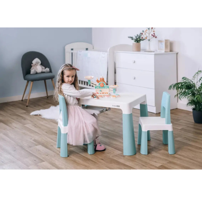 Дитячий ігровий стіл з двома стільцями — це стильний та функціональний елемент меблів, який стане чудовим доповненням до будь-якої кімнати: вітальні, їдальні, дитячої або ігрової зони. Він ідеально підходить для малечі, щоб малювати, творити, грати, їсти або читати.